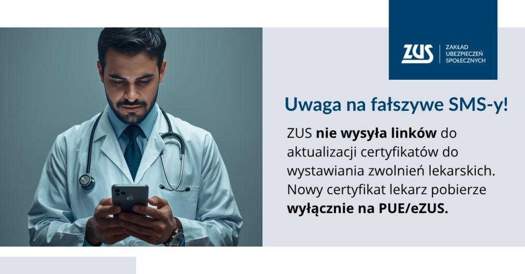 Uwaga na fałszywe SMS-y! ZUS nie wysyła linków do aktualizacji certyfikatów