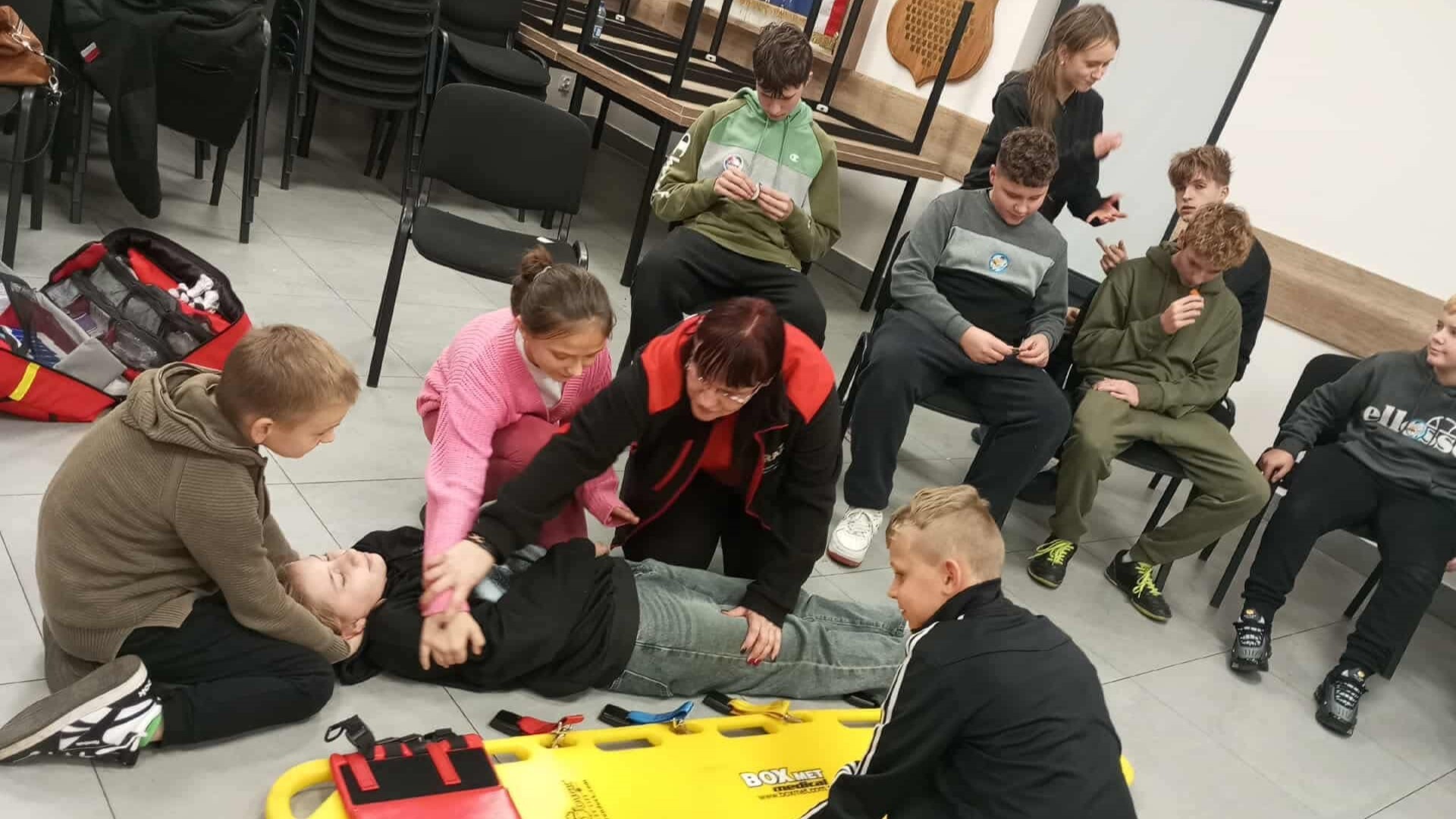 Tym razem we wtorek w Klubie Młodzieżowym Młodych odkrywców odbyły się kolejne zajęcia z pierwszej pomocy przedmedycznej.