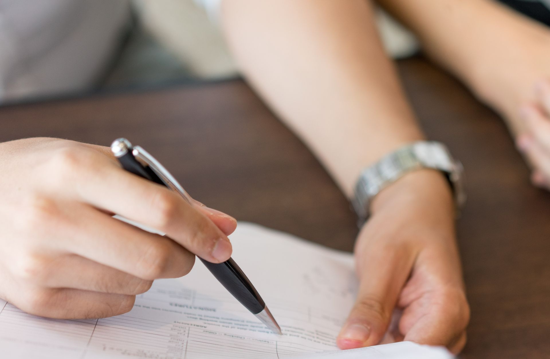 • Osoba wypełniająca coś w wersji papierowej długopisem